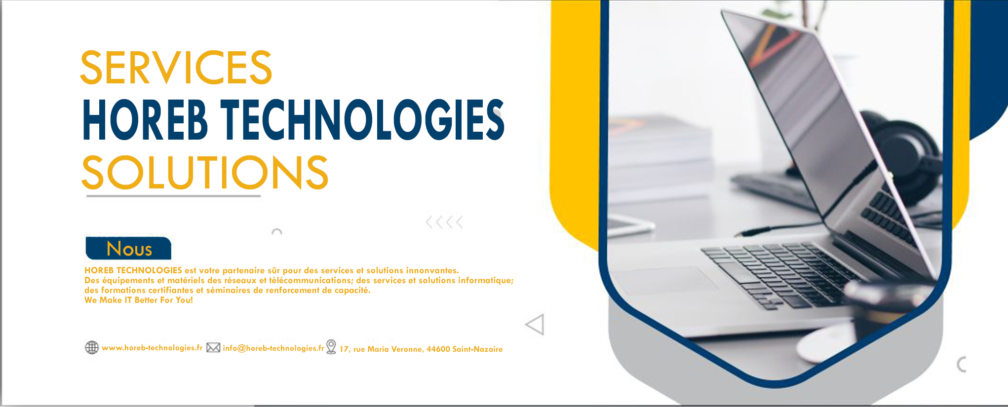 HOREB TECHNOLOGIES Intégrateur de solutions Systèmes d’information Réseaux & télécoms Conception Audits & Conseil RESEAUX & TELECOMS ACCEDEZ ARCHITECTURE & DESIGN ACCEDEZ ACHATS & COMMANDES ACCEDEZ Bien plus qu'un prestataire. Un partenaire. CONGO606, Av. JF TCHICAYA, Château d’eau – OCH, PNRTél. +242 04 452 2222 – +242 06 714 5330 info@horeb-technologies.fr FRANCE17 rue maria Vérone, 44600 Saint NazaireTél. : +33 9 55 31 46 54 – +33 6 41 12 91 07 We Make IT Better For You!